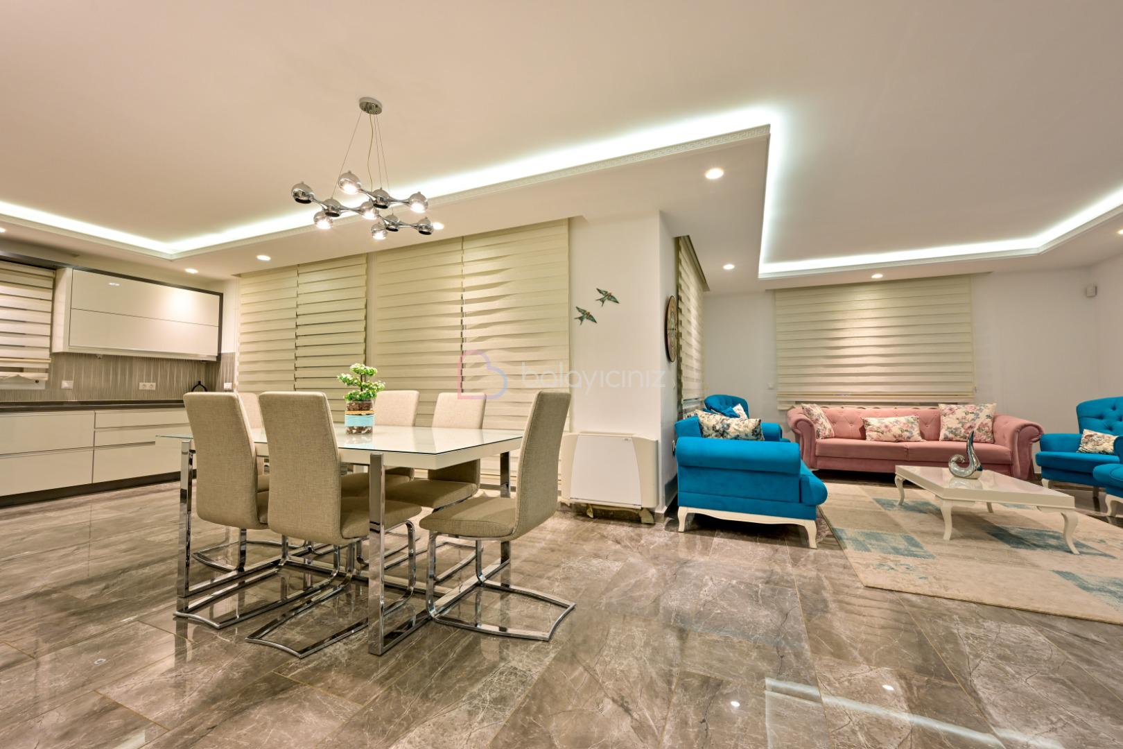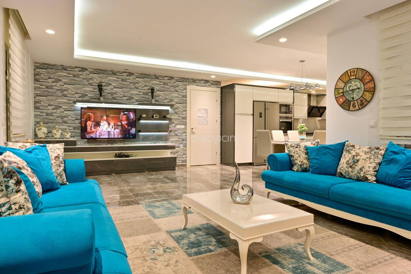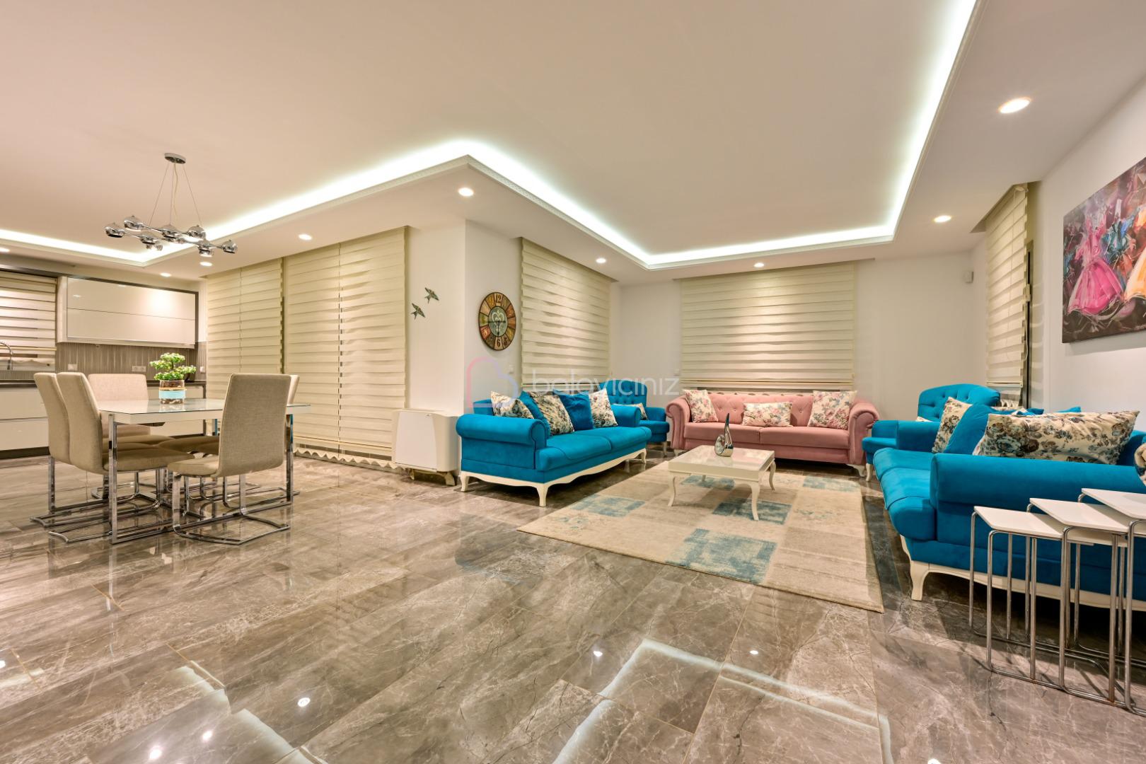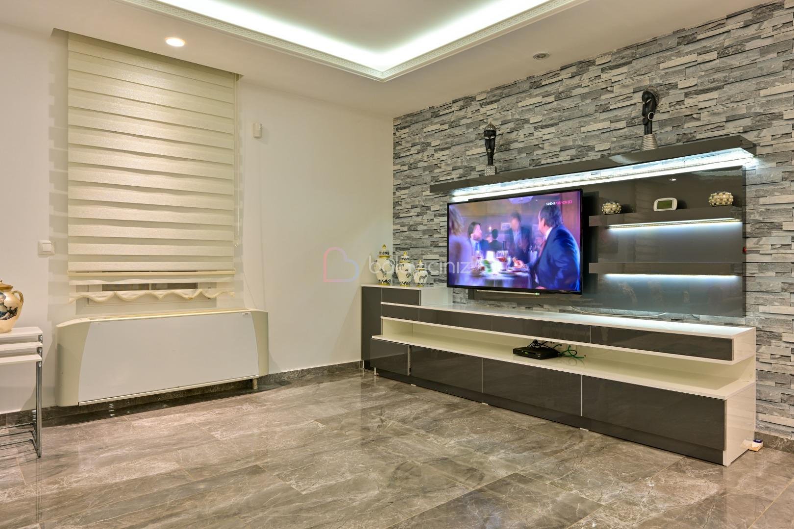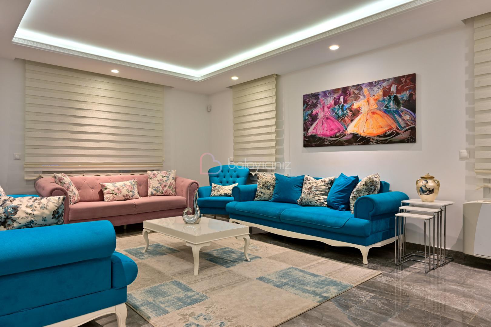 Oturma grubu, televizyon, orta sehpa, klima, havuz terasına çıkış bulunmaktadır.