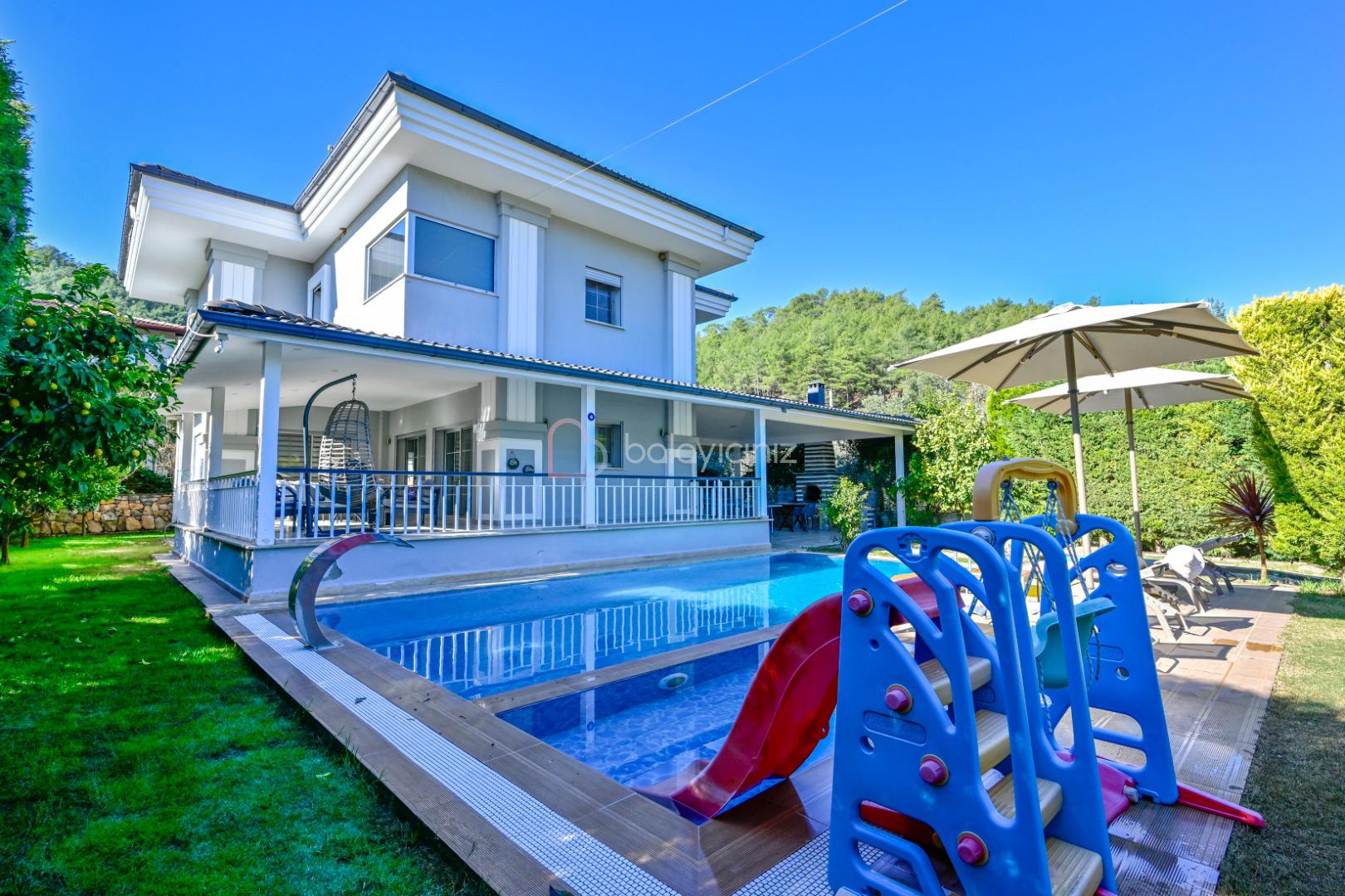 Göcek İnlice bölgesinde yer alan Villa Yağız Duo, 6 kişi kapasiteli 3 yatak odalıdır. Doğa içerisinde yer alan villamızda özel yüzme havuzu, bahçe alanı, çocuk oyun alanı, barbekü alanı bulunmaktadır. Bölge itibari ile bir çok plaja yakın olan villamızdan İnlice plajına, Bedri Rahmi Koyu, Göcek Adası gibi plajları gezebilirsiniz. Villa Yağız Duo sevdikleriniz ile birlikte güzel bir tatil geçirmeniz adına siz değerli misafirlerini beklemektedir.