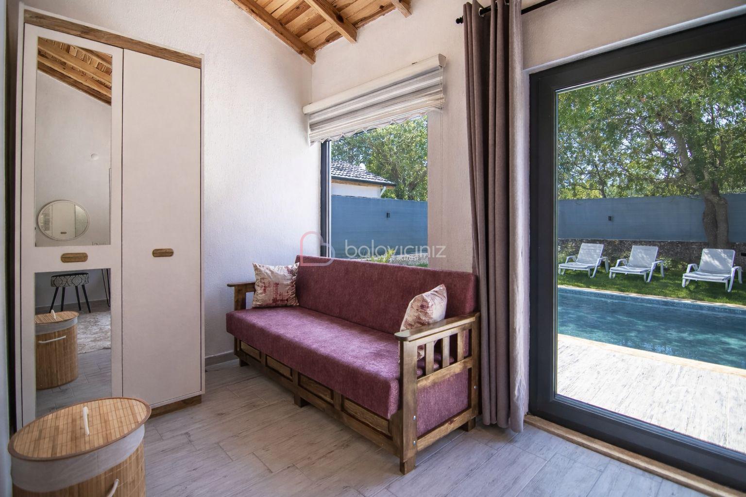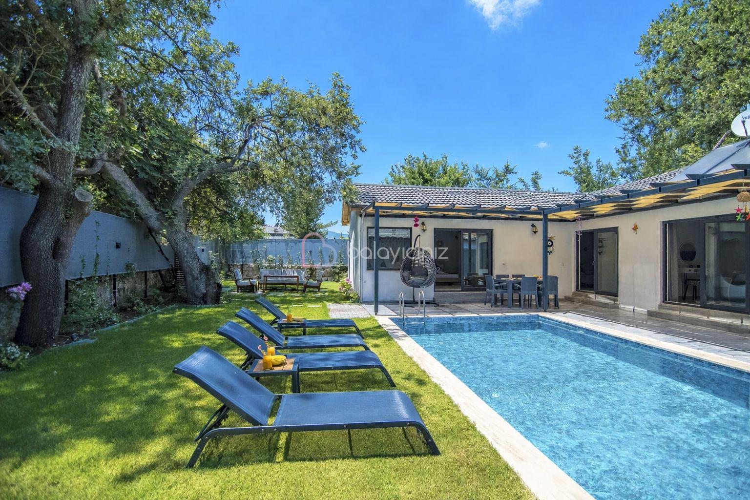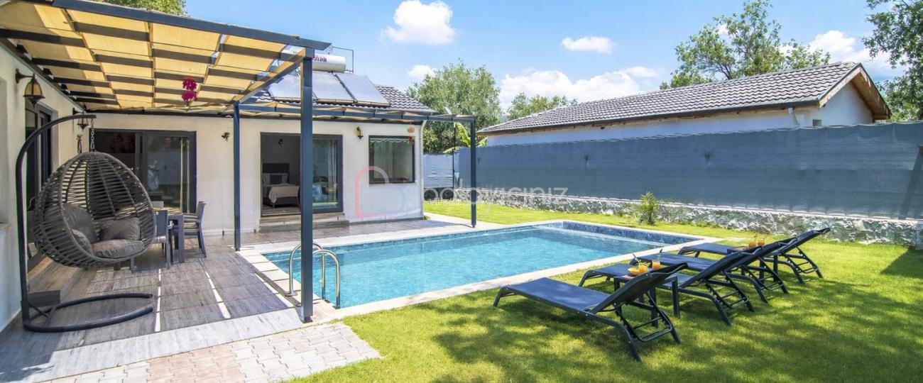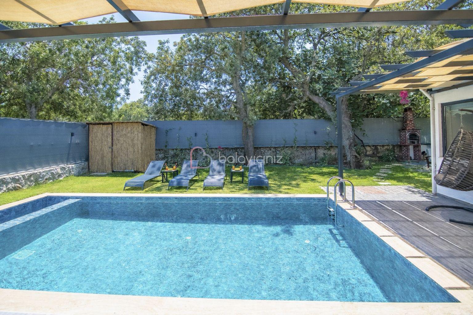Özel yüzme havuzu, şezlong, barbekü alanı, yemek masası, oturma alanı, salıncak, bulunmaktadır.