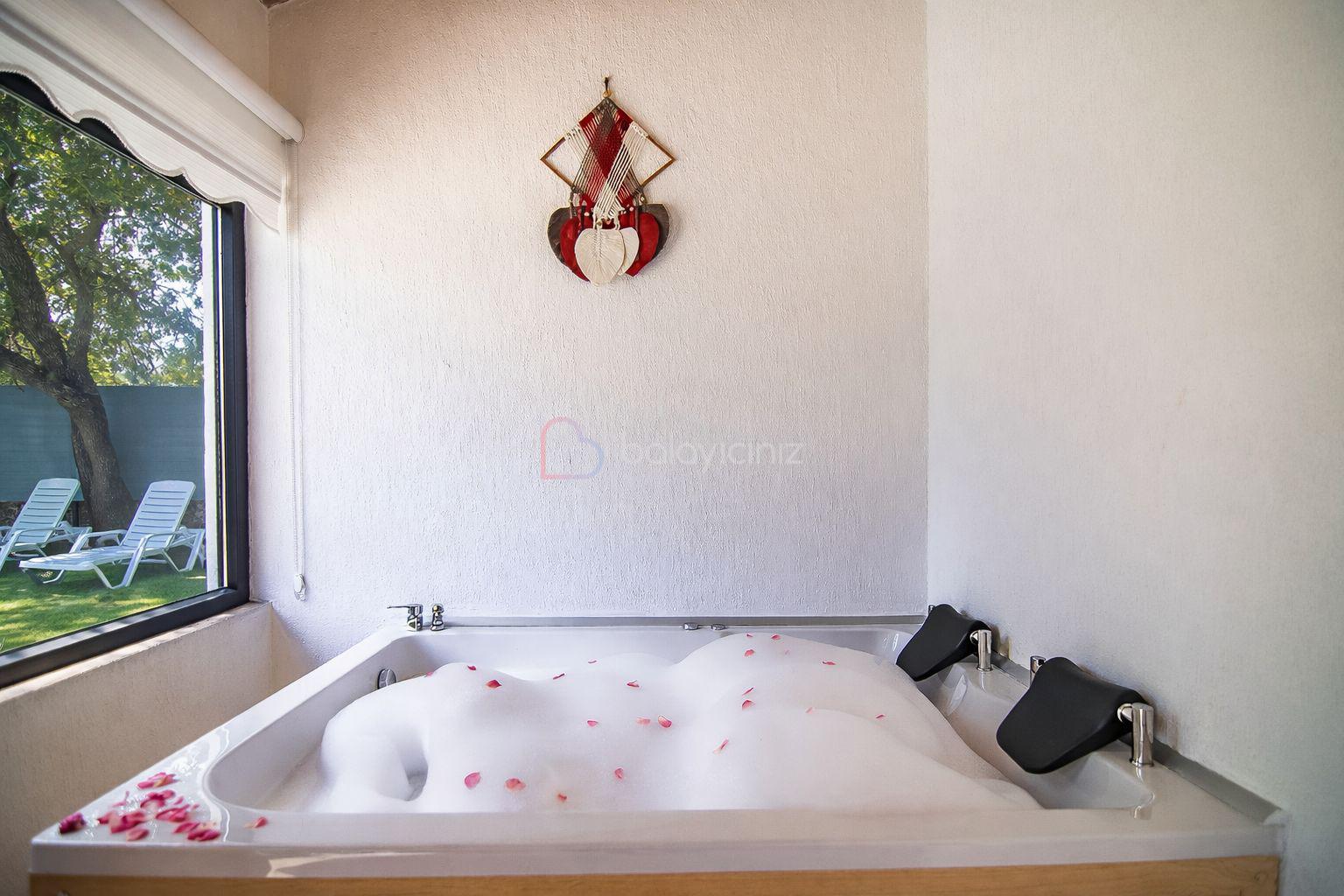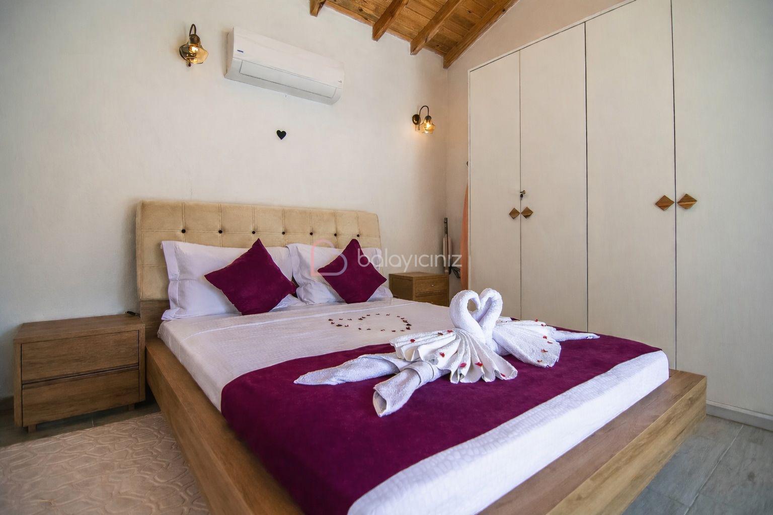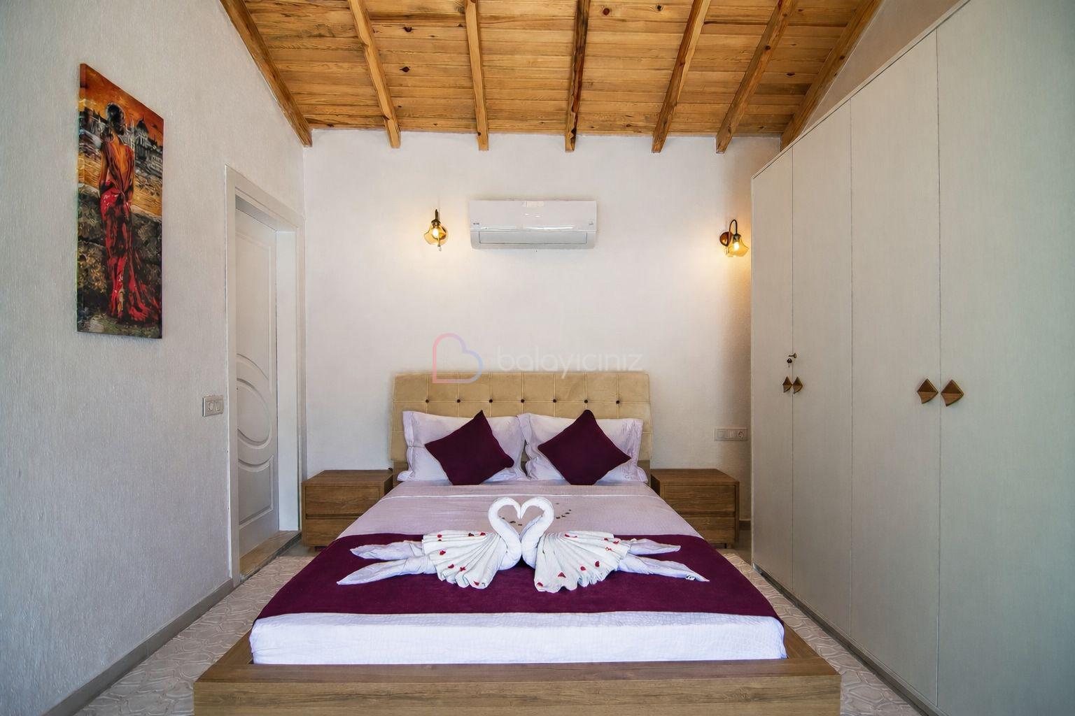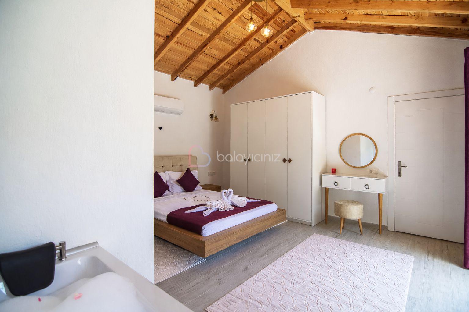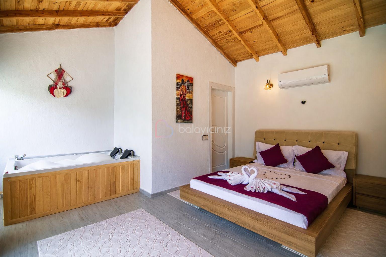 1.Yatak Odası: 1 adet çift kişilik yatak, makyaj masası, elbise dolabı, klima, jakuzi, banyo ve tuvalet bulunmaktadır.
