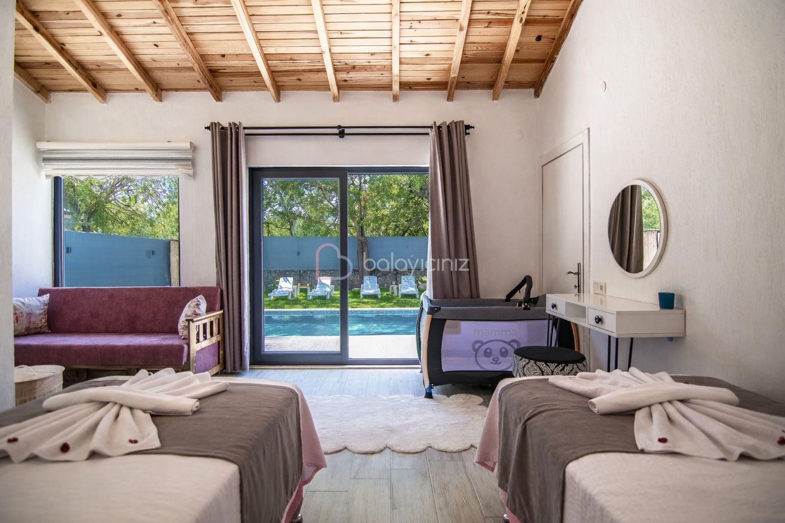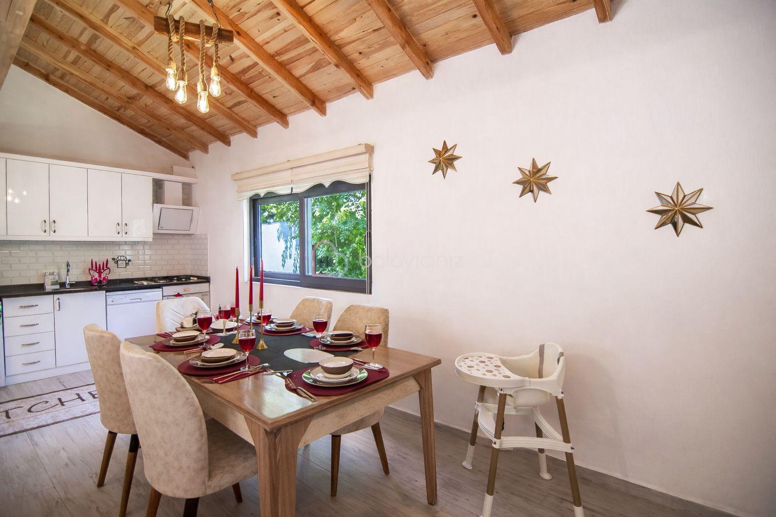 Yemek HizmetiVilla Yamis Kayaköy muhafazakâr tatil villası seçeneklerimizdendir. Tarihi dokusu ile ünlü muhteşem kayaköy de bulunan villamız 2 adet yatak odasına ve 2 banyoya sahip olup 4 kişi konaklama kapasitesine sahiptir. 2 yatak odasında 1 çift kişilik ve 2 tek kişilik yatak bulunmaktadır. Açık plan oturma/yemek odası ve mutfak bölümünden, dışarıdan görünmeyecek şekilde tasarlanmış yüzme havuzu ve mangal/veranda alanına geçilmektedir.