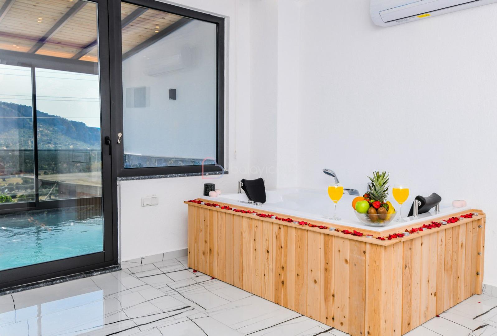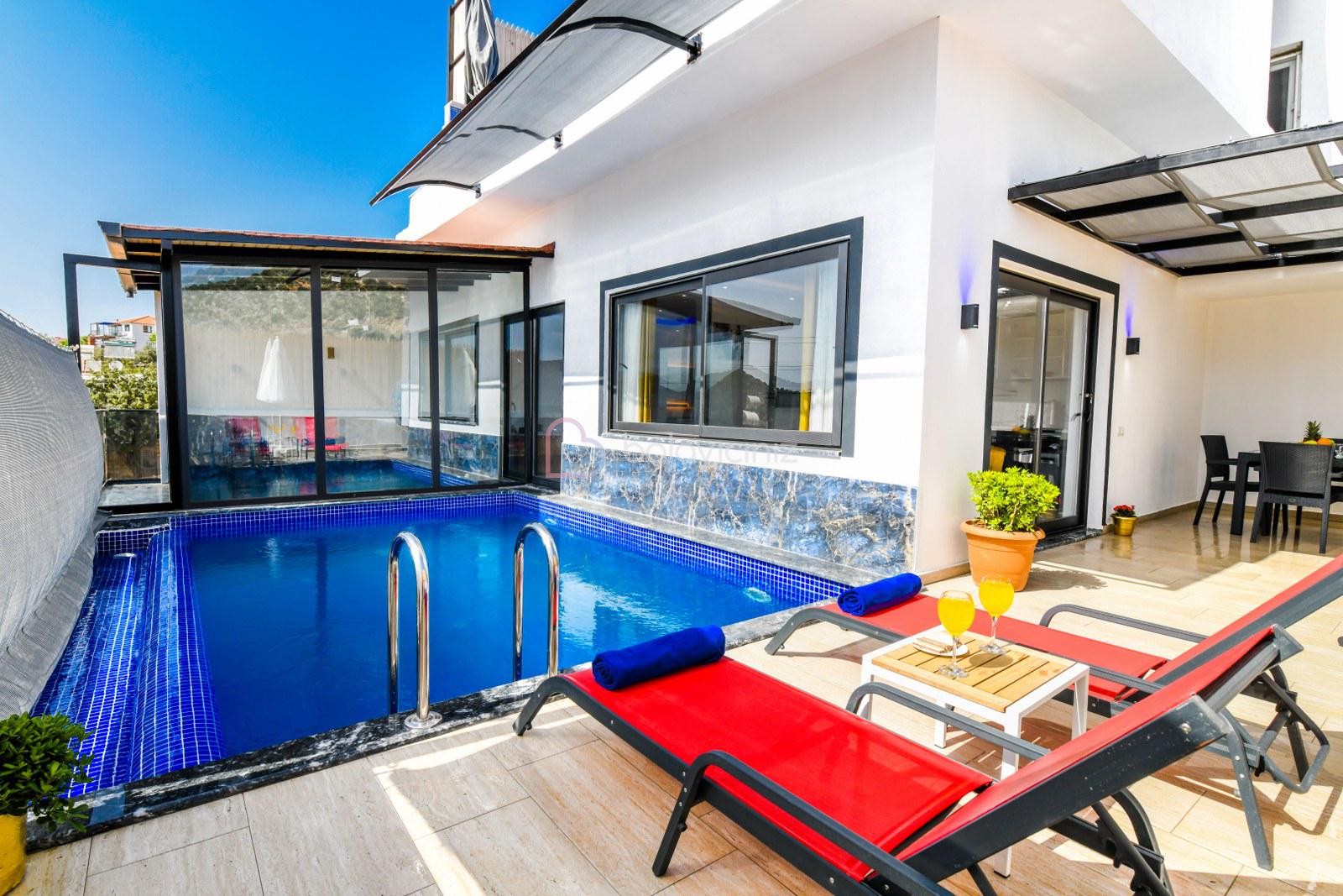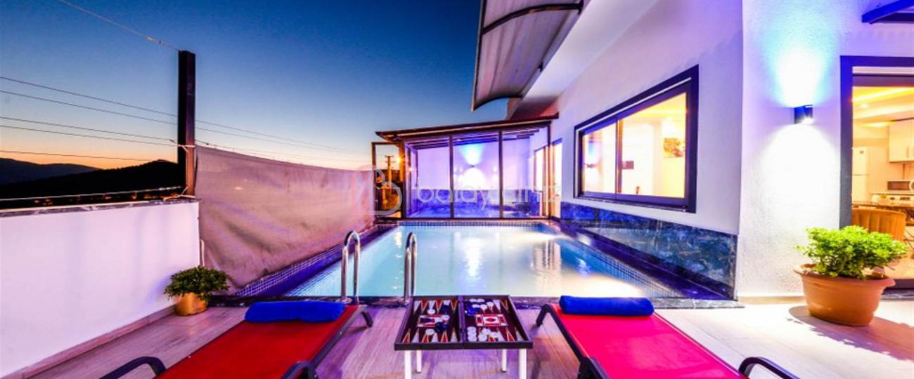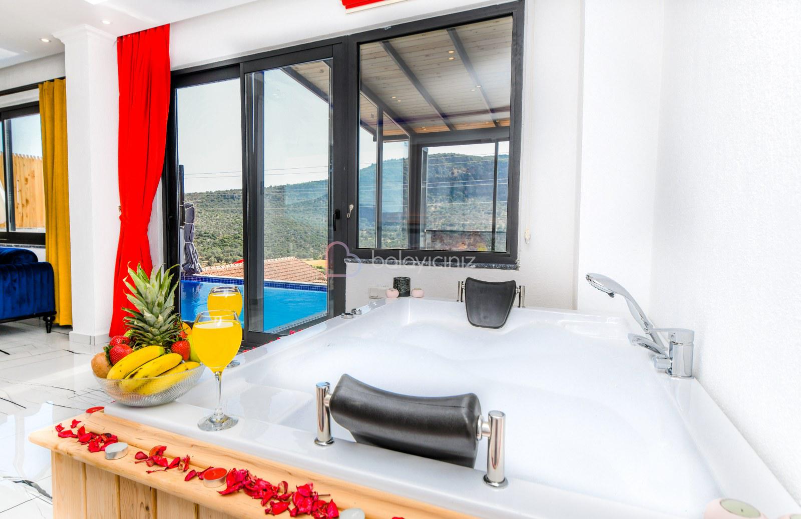 Kalkan'da merkezi bir konumda bulunan villa Yaz 4, balayı çiftleri ve 2 kişilik çiftlerimiz için özenle dekore edilmiştir. Villamızın 2 kişi kapasitesi ve 1 yatak odası bulunmaktadır. Aynı zamanda jakuzisi ve kapalı havuzu bulunan villamızın havuz ve havuz alanının korunaklı olması ile sizlere gözlerden uzak ve doğa ile iç içe bir tatil geçirme olanağını sağlamaktadır. Villamız siz değerli misafirlerimize mesafe olarak merkezi konumu nedeniyle ulaşımda kolaylık sağlamaktadır.