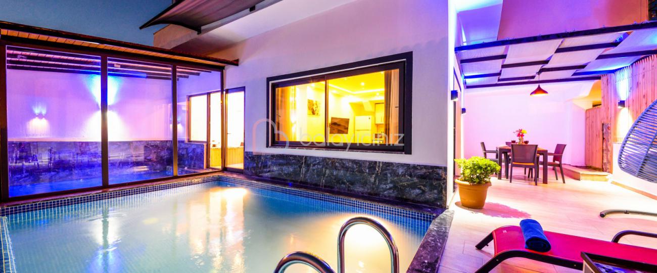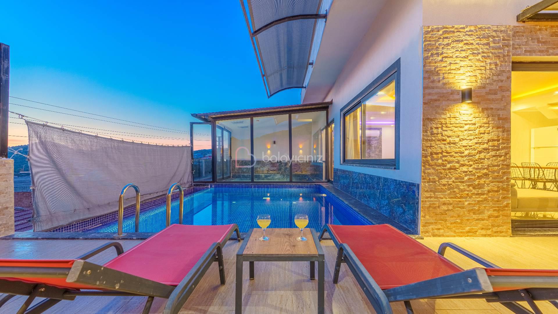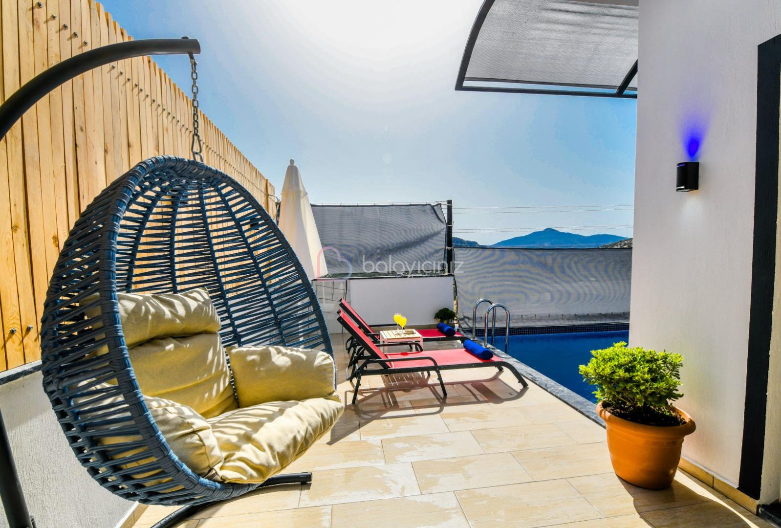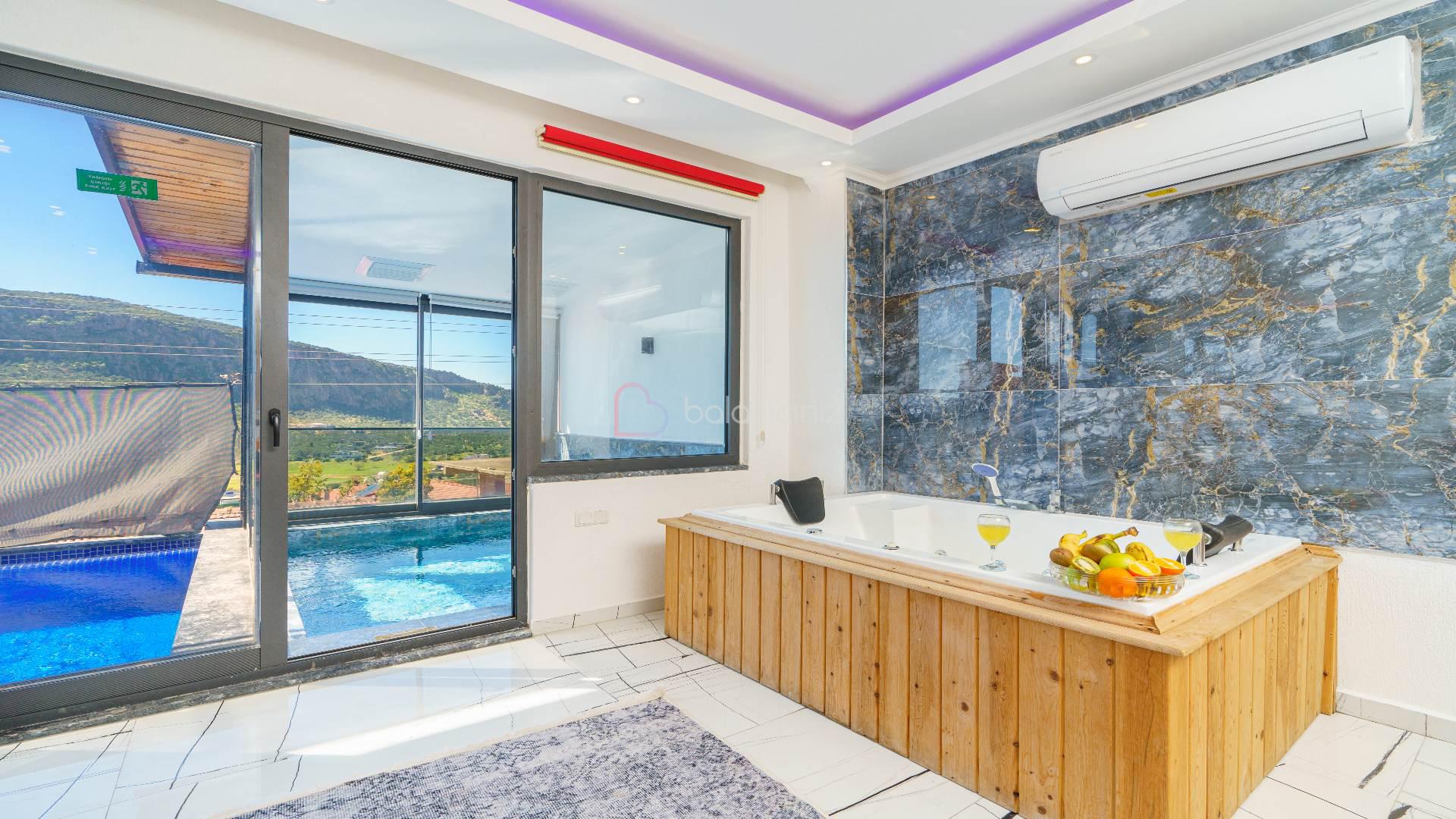 Kalkan'da merkezi bir konumda bulunan villa Yaz 4, balayı çiftleri ve 2 kişilik çiftlerimiz için özenle dekore edilmiştir. Villamızın 2 kişi kapasitesi ve 1 yatak odası bulunmaktadır. Aynı zamanda jakuzisi ve kapalı havuzu bulunan villamızın havuz ve havuz alanının korunaklı olması ile sizlere gözlerden uzak ve doğa ile iç içe bir tatil geçirme olanağını sağlamaktadır. Villamız siz değerli misafirlerimize mesafe olarak merkezi konumu nedeniyle ulaşımda kolaylık sağlamaktadır.