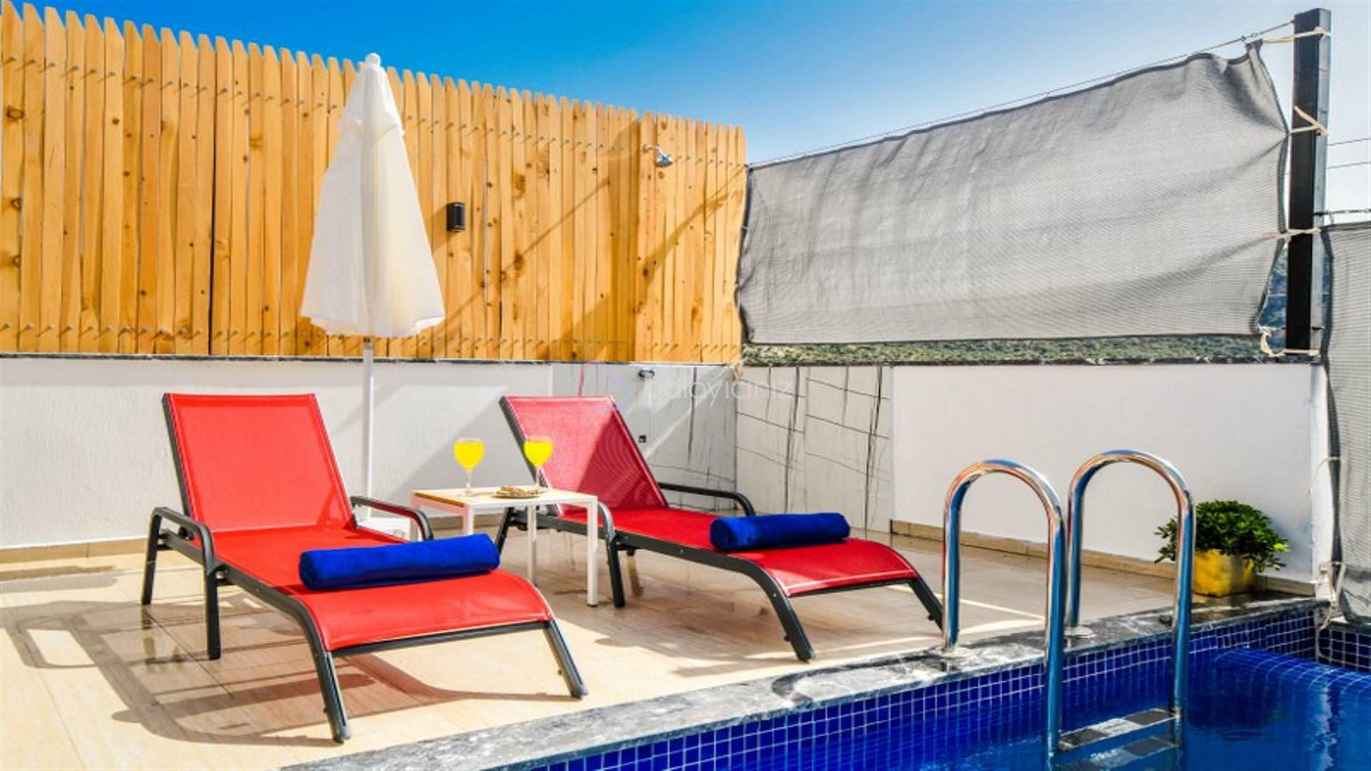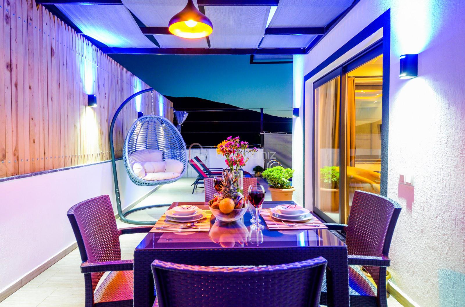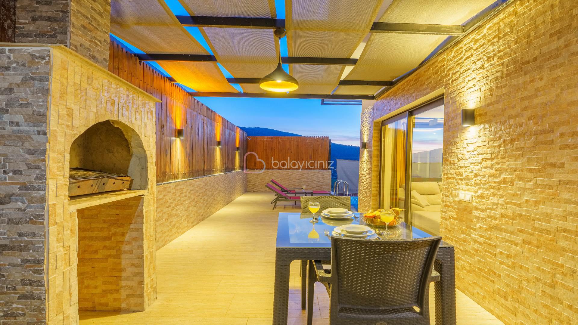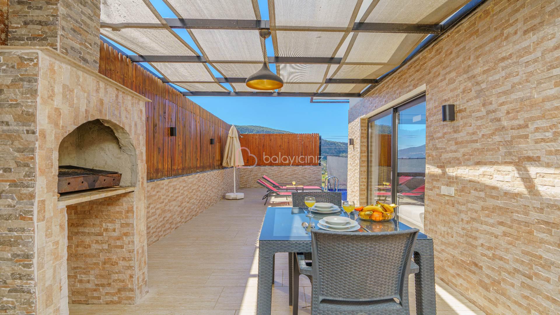 Terasında özel yüzme havuzu, şezlonglar, güneş şemsiyeleri, masa ve sandalyeler, pergola, mangal bulunmaktadır.