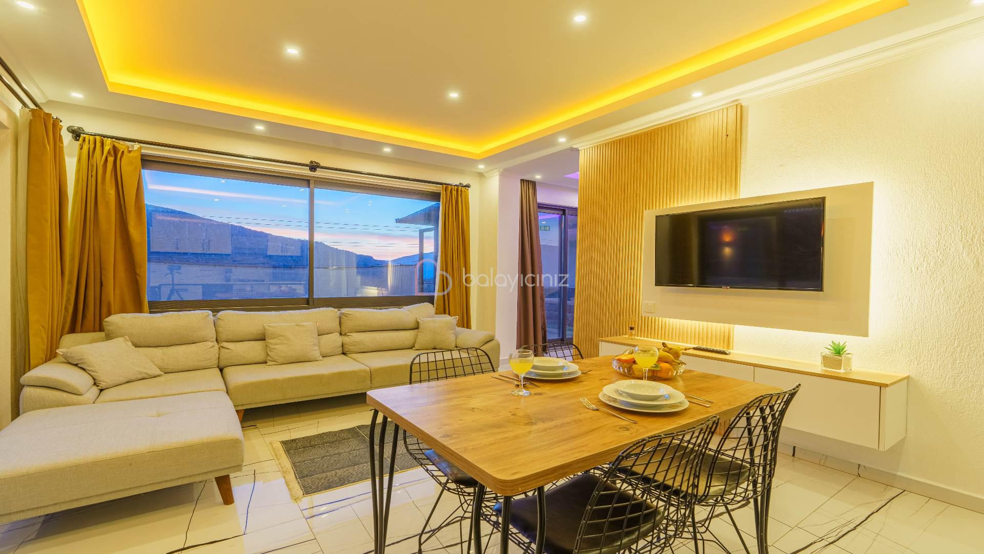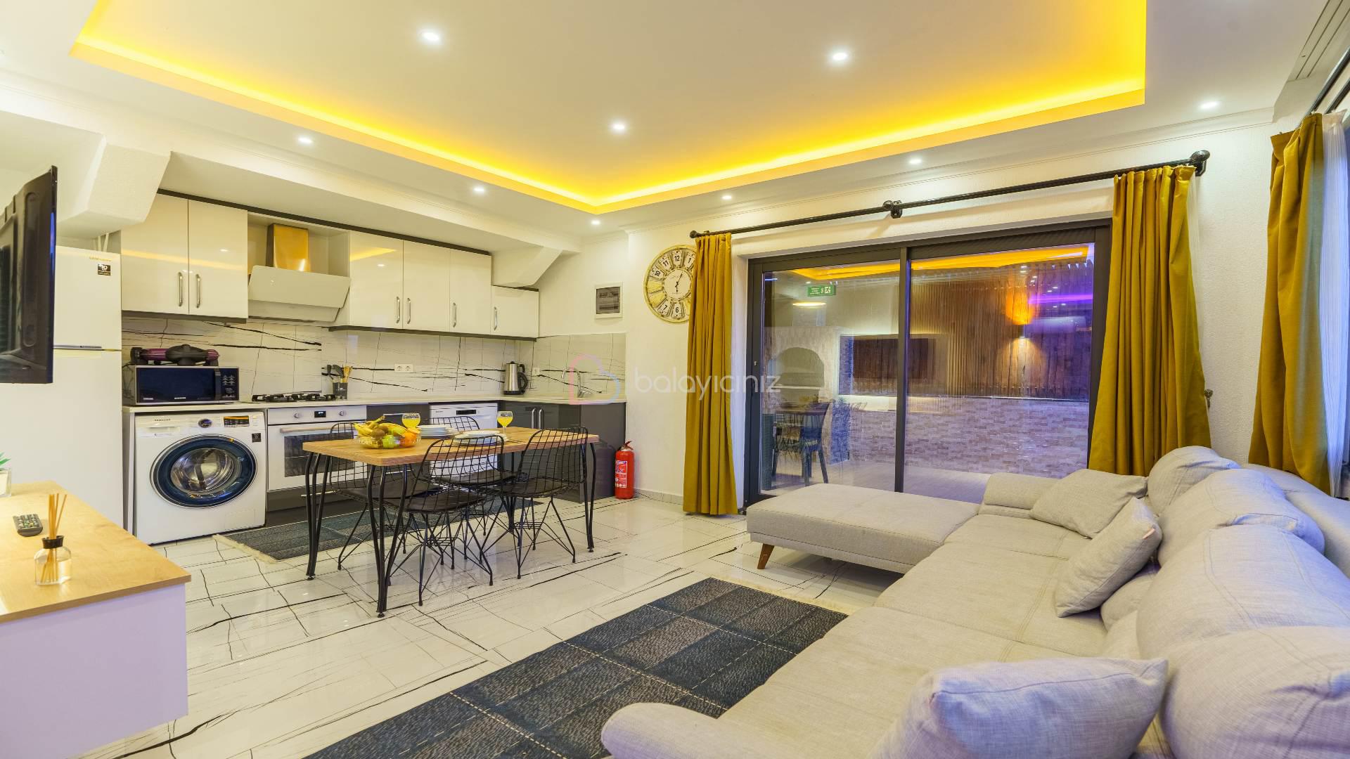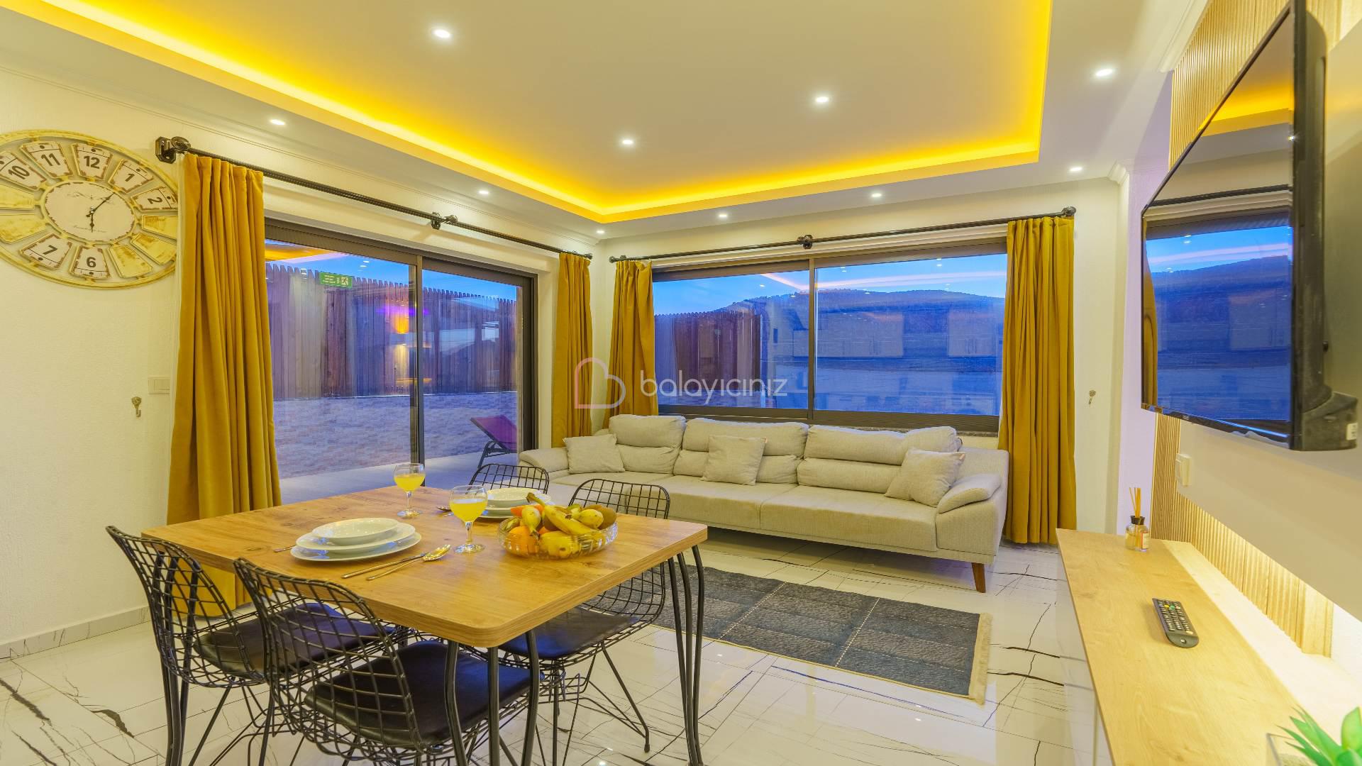 Oturma grubu, klima, televizyon, sehpa, uydu alıcı, internet, bulunmaktadır. Havuz terasına çıkış yapılabilmektedir.