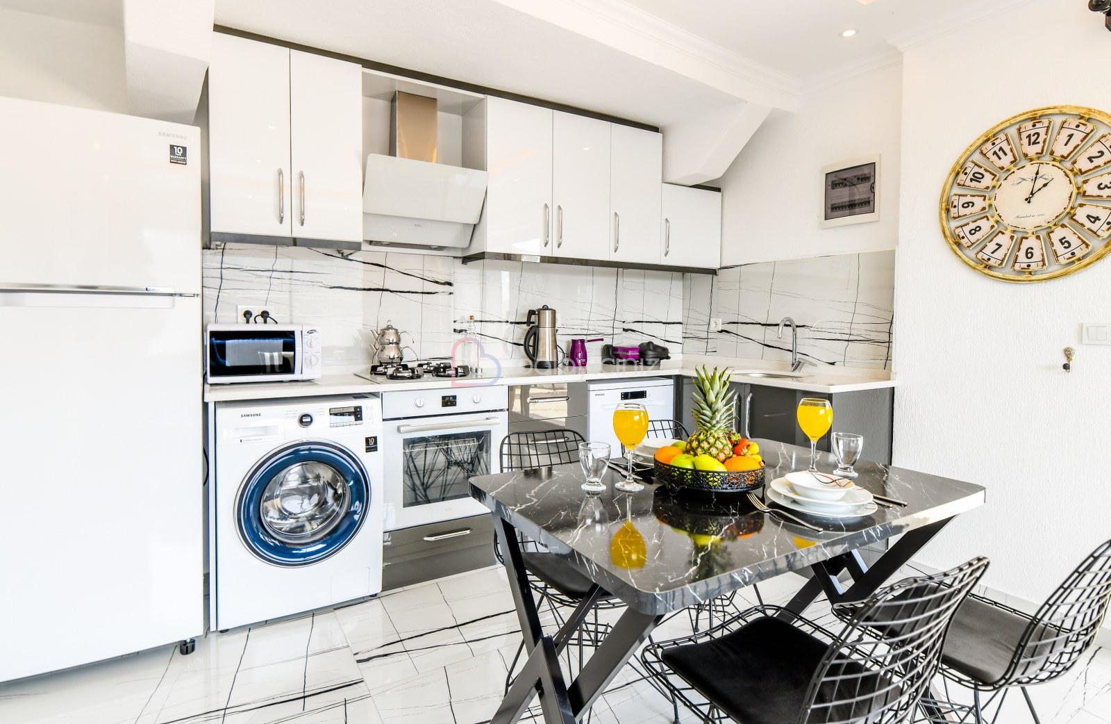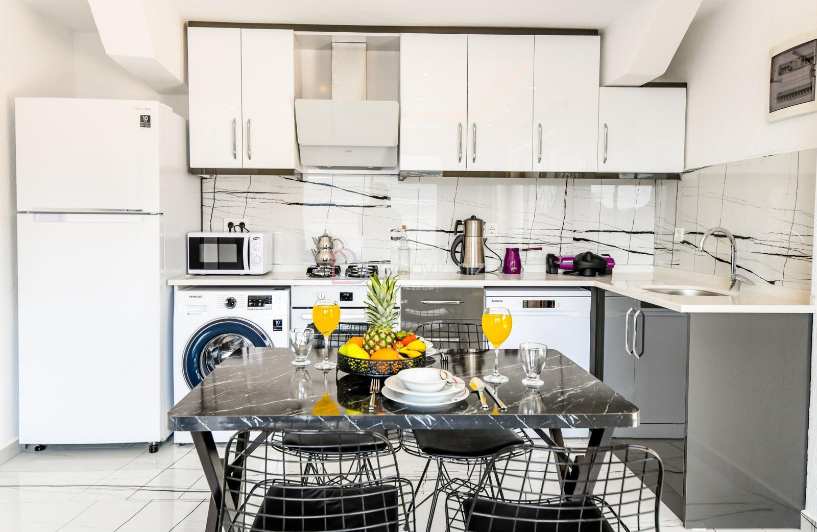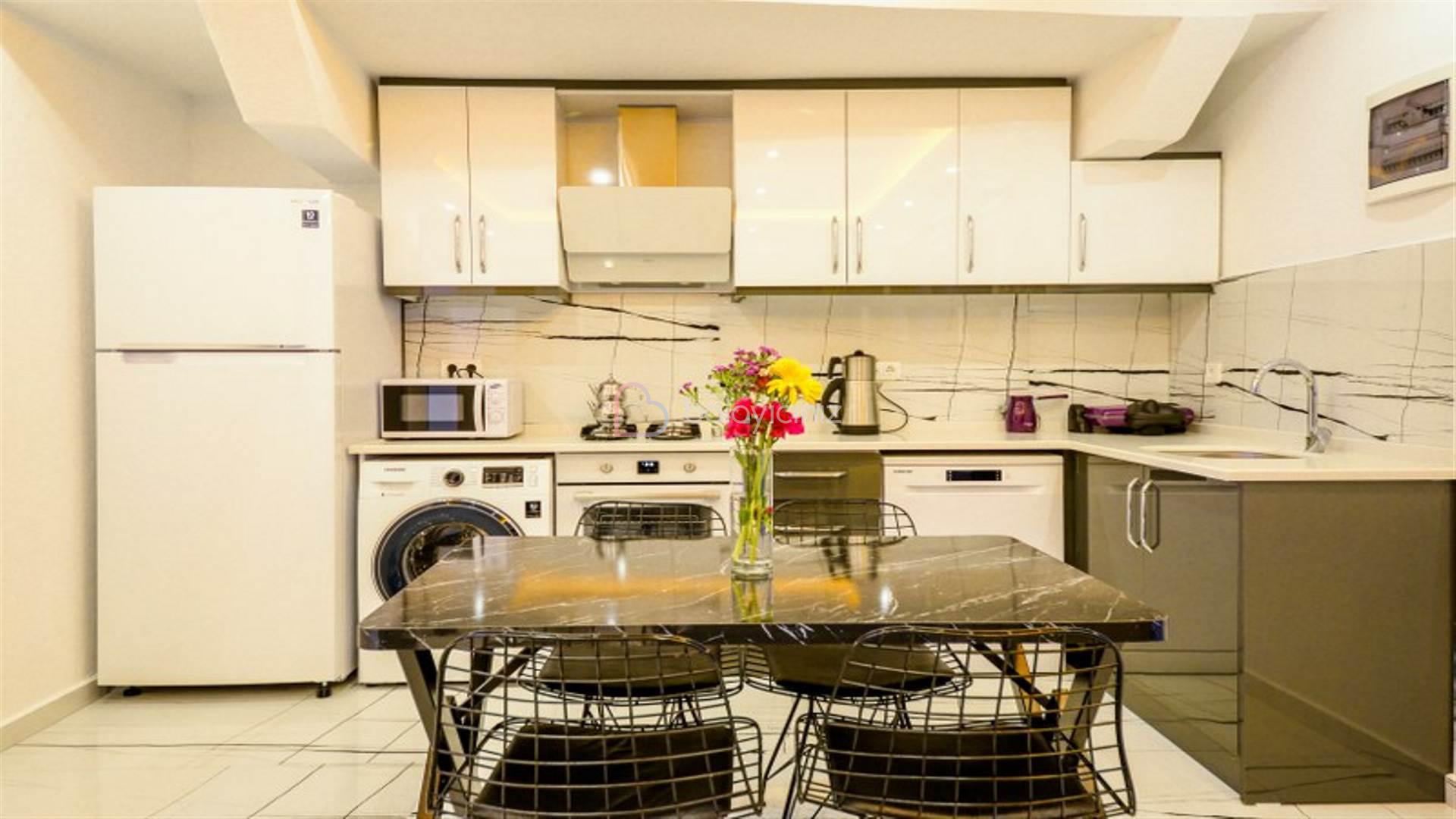 Amerikan mutfakta buzdolabı, bulaşık makinesi, fırın, 4'lü ocak, mikrodalga fırın, ketle, tost makinesi, yemek masası, yemek takımları, çatal ve bıçak takımları, tencere ve tava takımları, bardaklar bulunmaktadır.