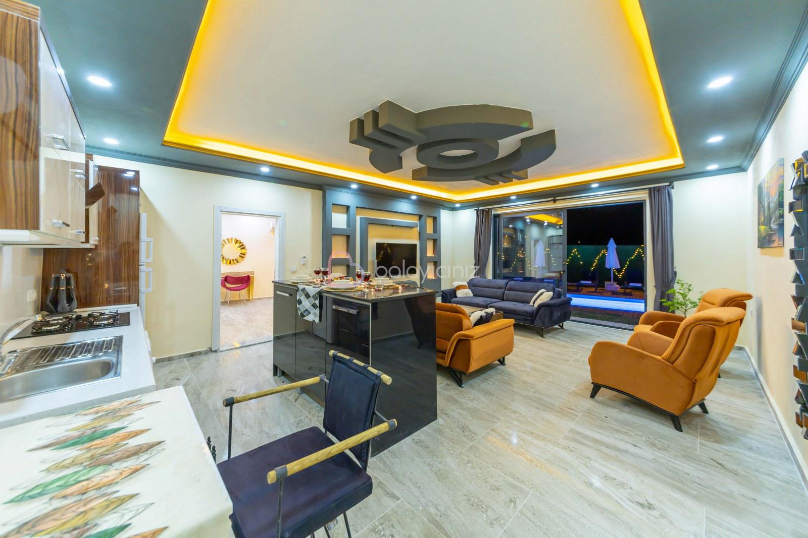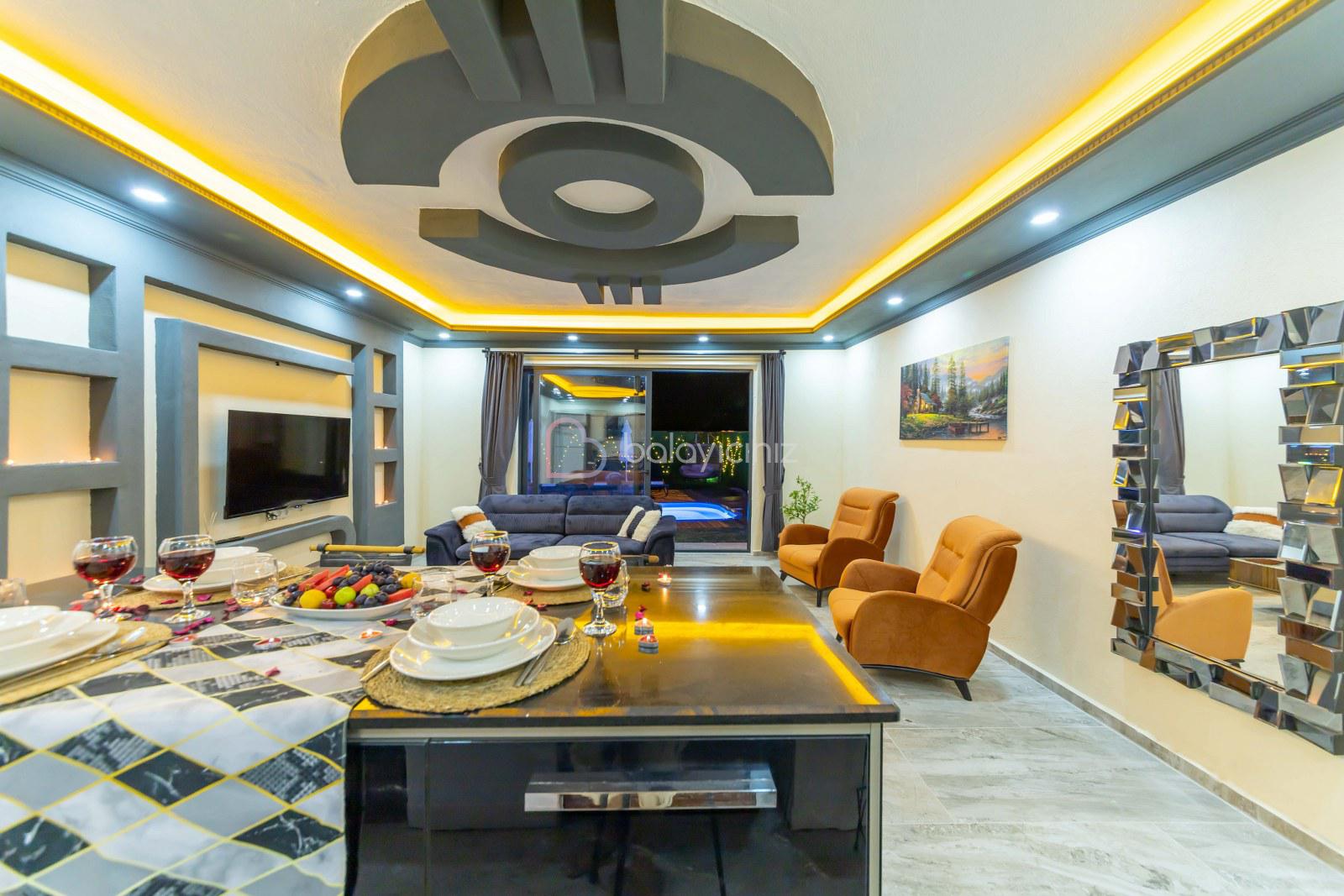 Salonumuzda oturma grubu, LCD TV, klima, sehpa bulunmaktadır. Havuz terasına çıkış yapılabilmektedir.