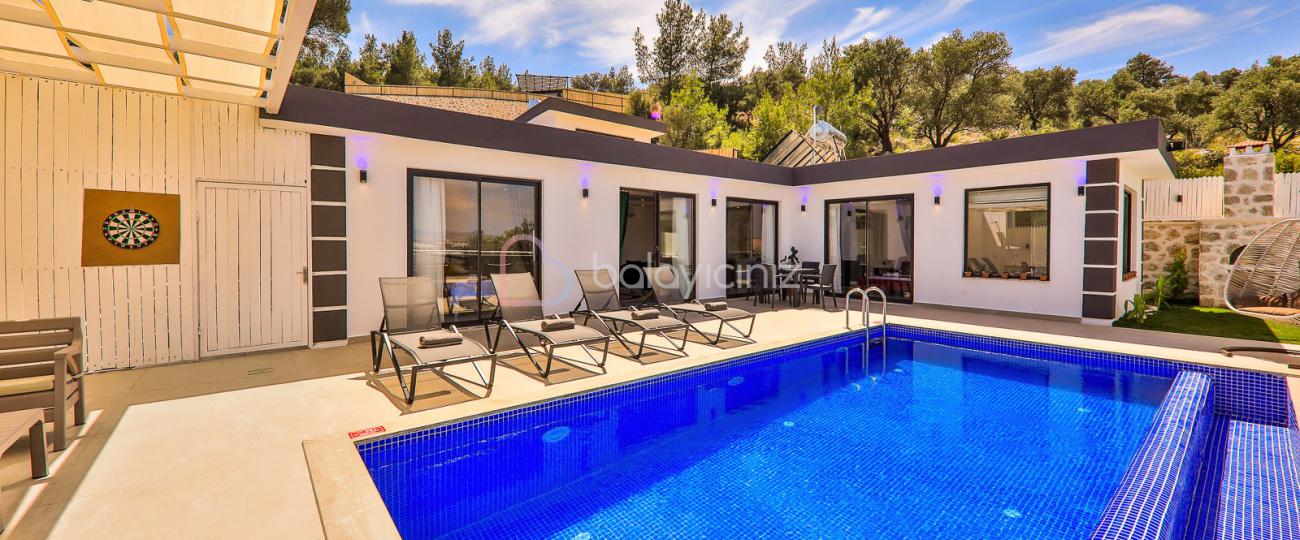 Villa Zeybek Akdeniz'in en popüler bölgelerinde olan Kaş’ın Patara mevkiinde doğa manzarasına sahip, romantik balayı villamızdır. Doğa içerisinde keyifli bir tatil yapmak isteyen misafirlerimiz için 2 yatak odalı 4 kişilik kapasiteli, jakuzili olarak tasarlanmıştır.